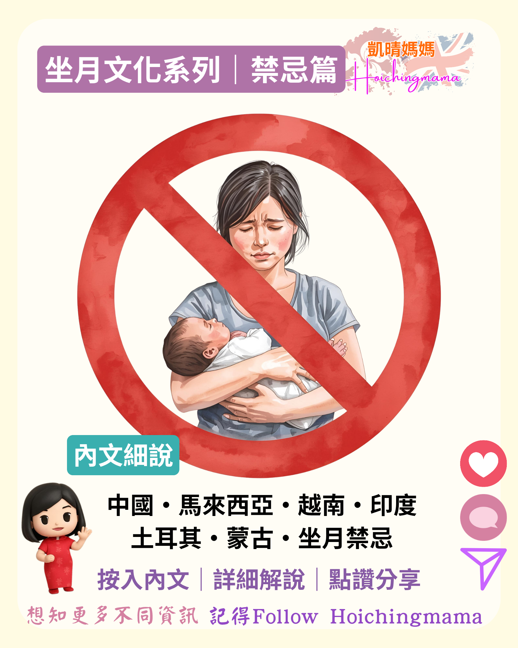 🇲🇾 馬來西亞:忌外出、忌接風,坐月媽媽多留喺屋企靜養,減少感染風險。