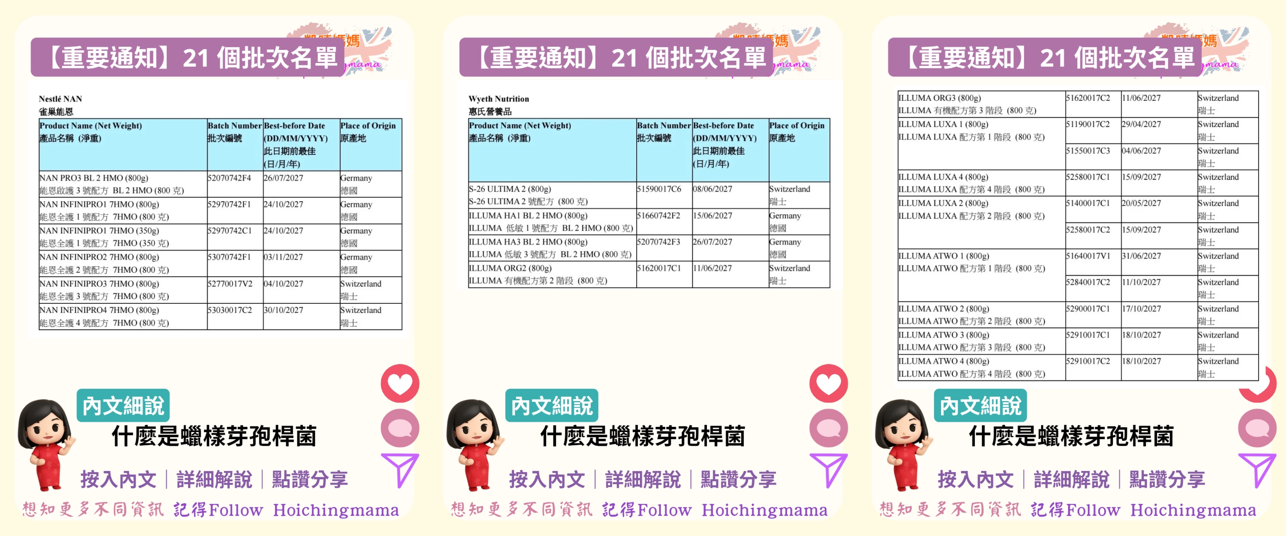 👉 本港 21 個批次的嬰幼兒配方奶粉將停售、下架並展開回收。