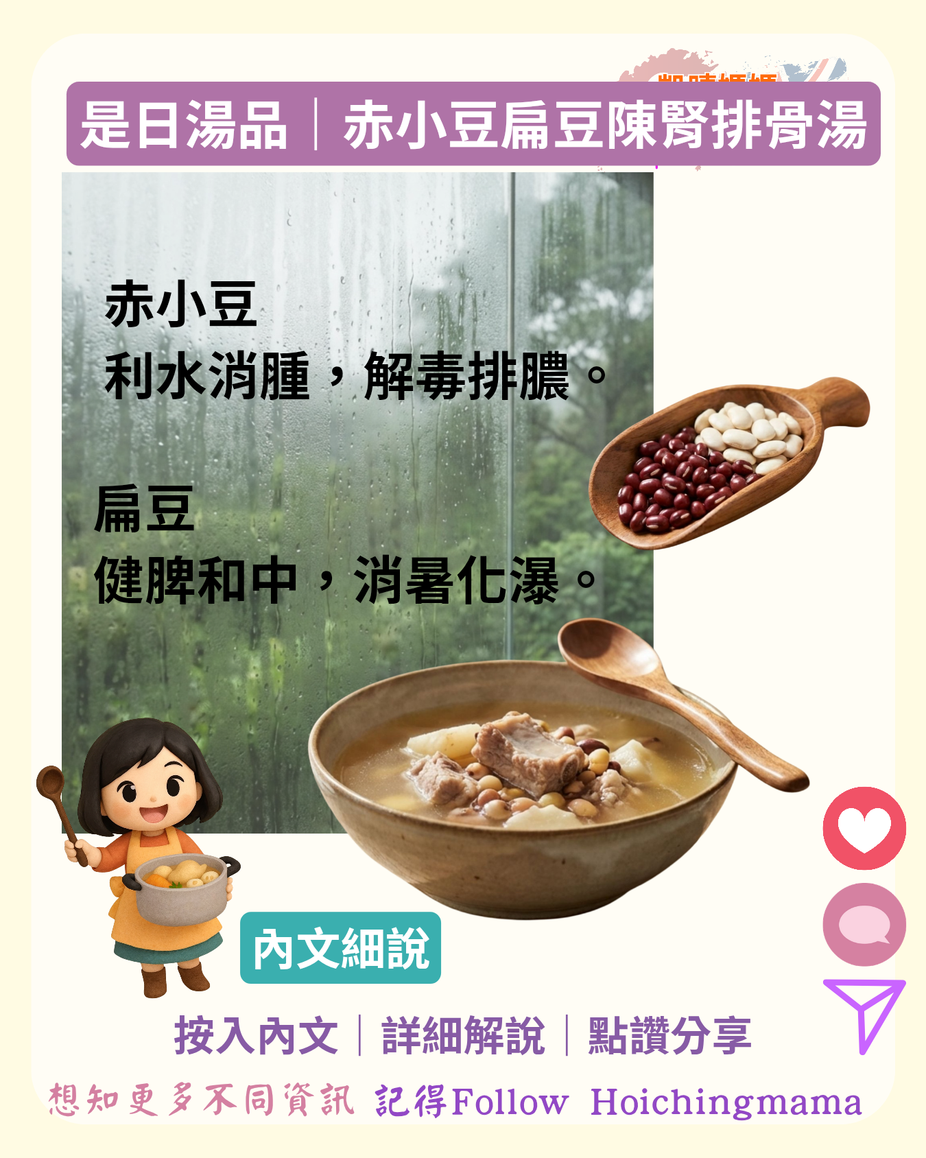 🌧️赤小豆、扁豆、陳腎嘅組合,係經典嘅健脾祛濕、利水消腫配方,特別適合: