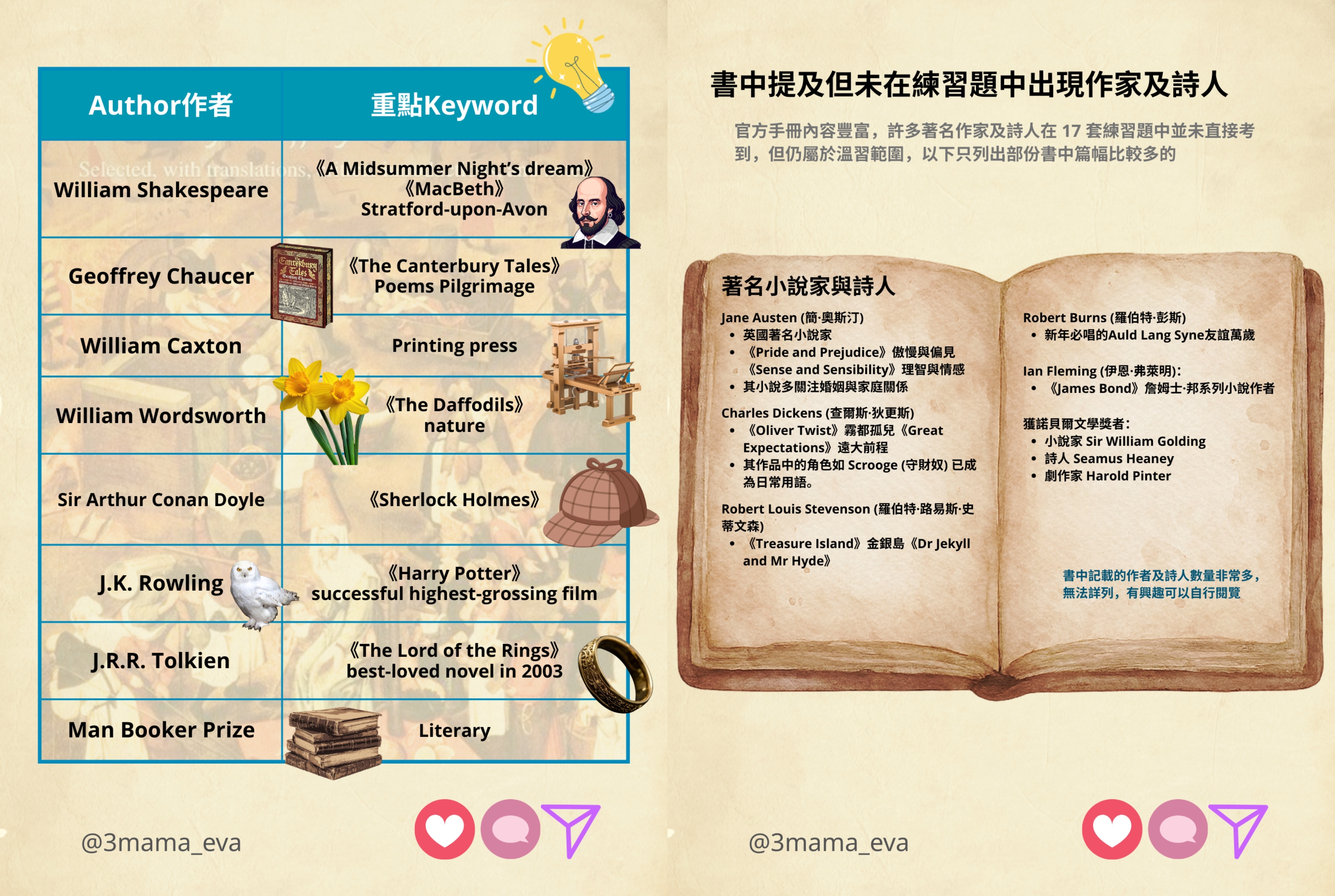 書中提及其他作家及詩人但未在練習題中出現都比較多,我放只抽出少量比較著名嘅在最後一張圖